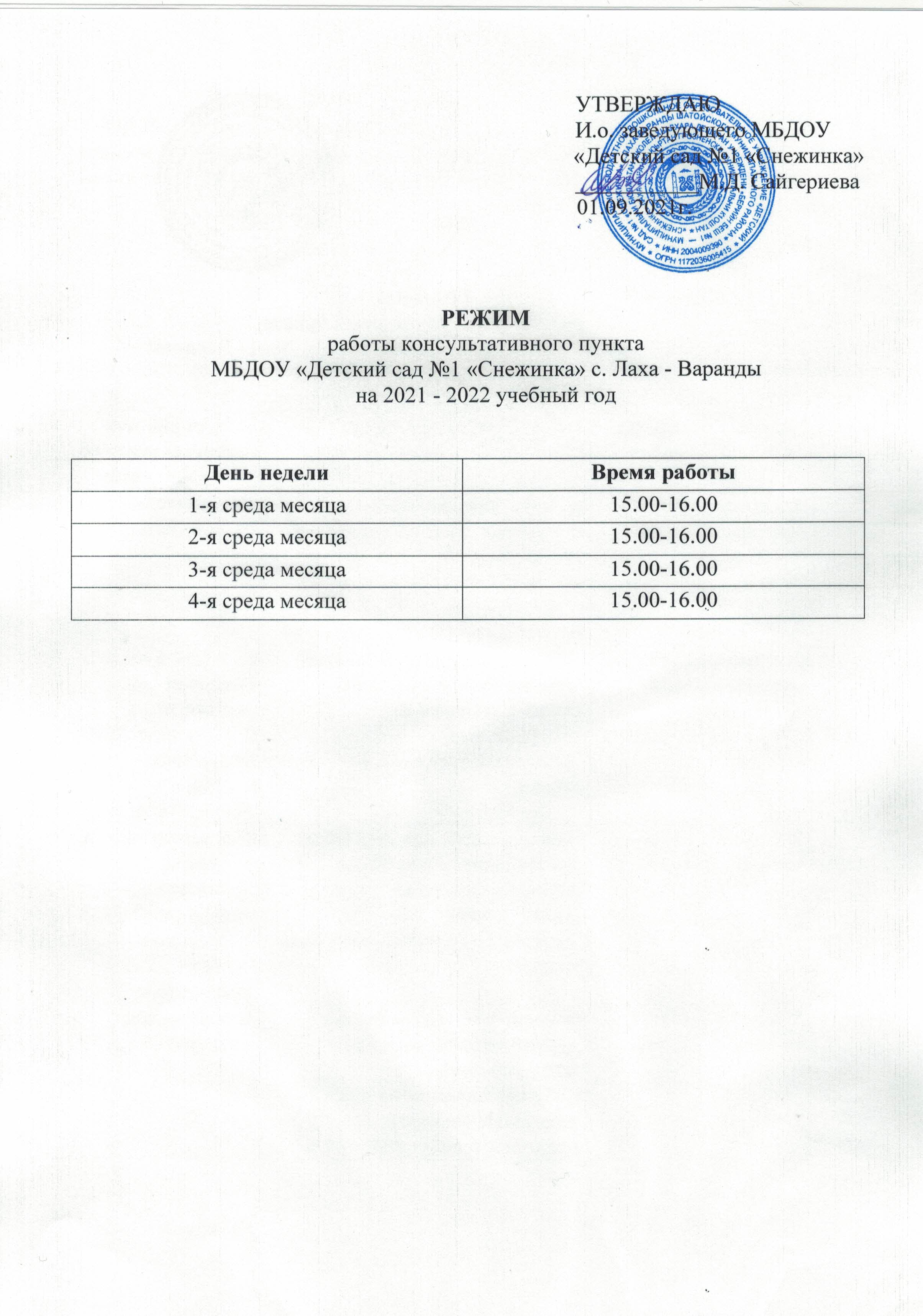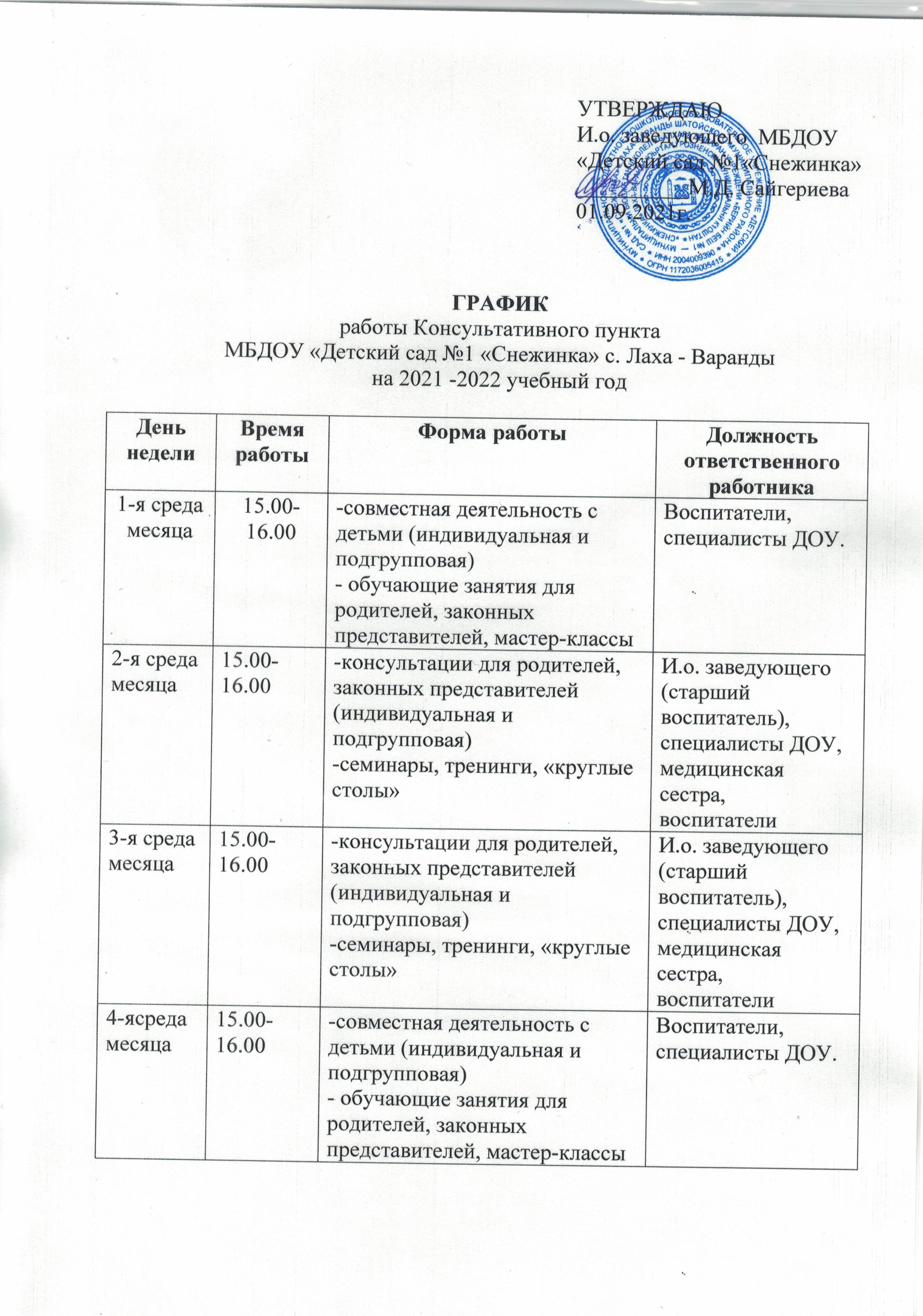 Годовой календарный учебный график Муниципального бюджетного дошкольного образовательного учреждения "Детский сад №1 "Снежинка" с. Лаха-Варанды Шатойского Муниципального района" на 2025-2026 учебный год