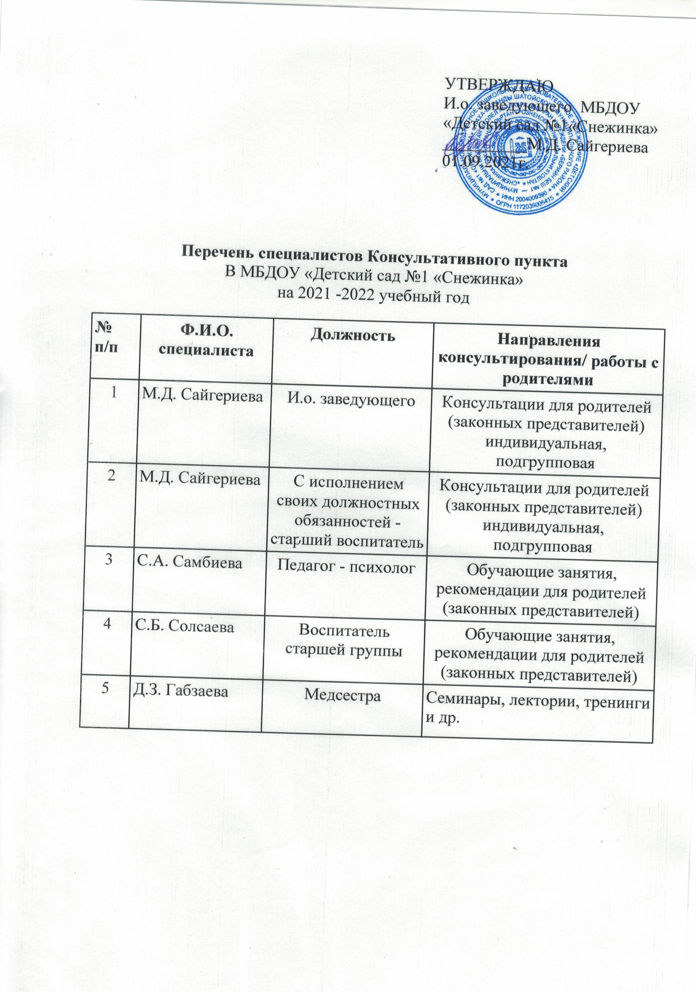 Учебный план Муниципального бюджетного дошкольного образовательного учреждения "Детский сад №1 "Снежинка" с. Лаха-Варанды Шатойского Муниципального района" на 2025-2026 учебный год